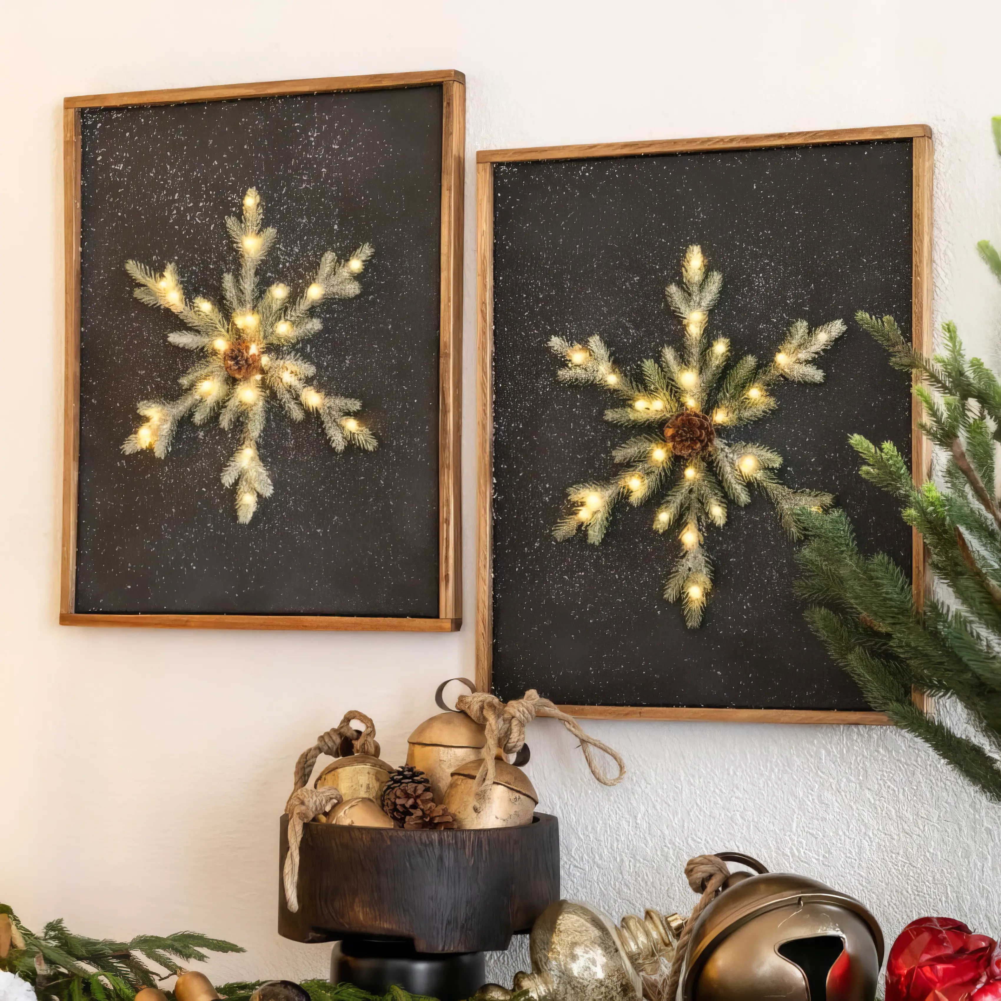 Discover the enchanting allure of the Snowflake Starlight Frame, a decorative wall piece that beautifully lights up your space. Its delicate snowflake design adds a touch of winter magic.